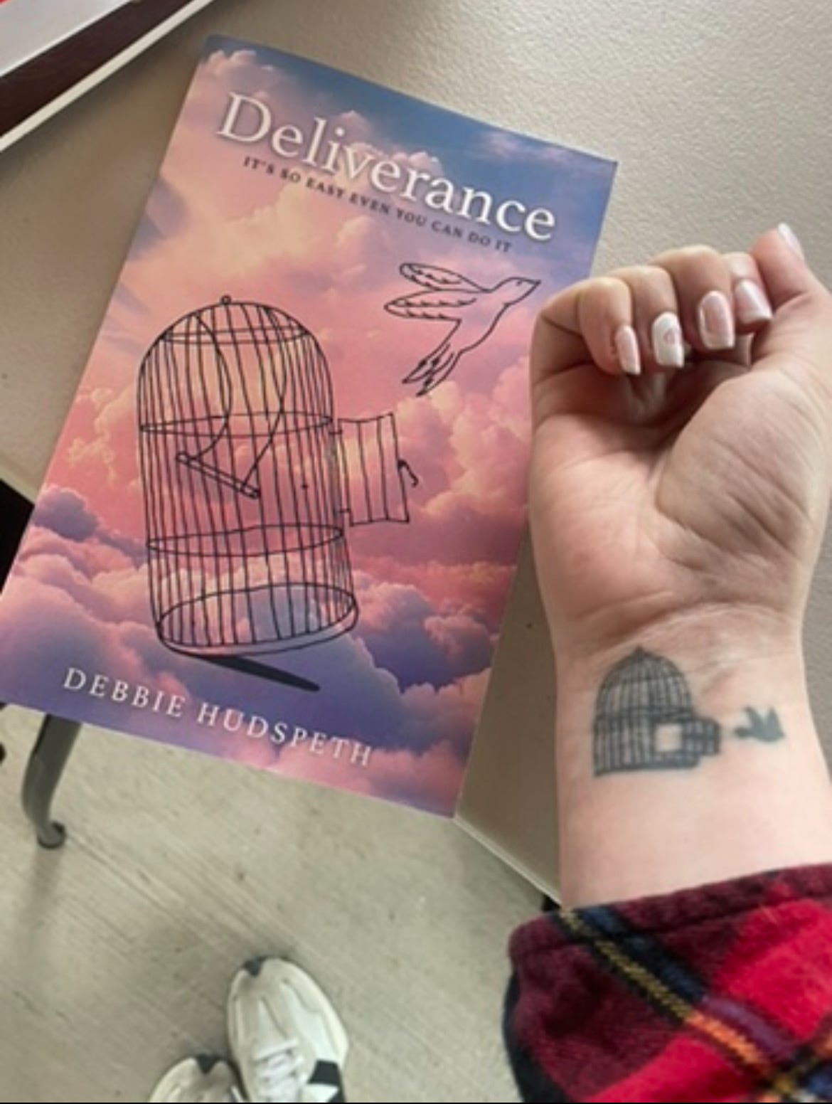 Pictured: a tattoo I got about 10 years ago, and a book authored by the woman who trained me this last weekend. (You think Jesus is trying to tell me something?? Haha.)